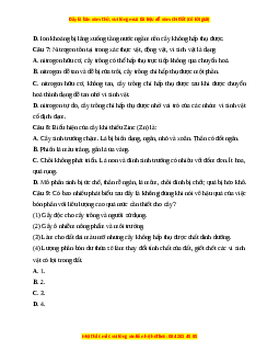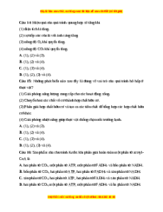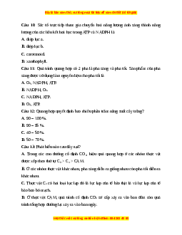 Câu 12: Quang hợp quyết định bao nhiêu phần trăm năng suất cây trồng? A. 90 – 100 %. B. 90 – 95 %. C. 40 – 50 %. D. 50 – 70 %.