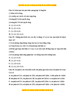 Câu 16: Sản phẩm của chu trình Krebs khi phân giải hoàn toàn một phân tử acetyl-