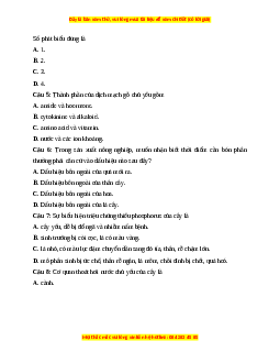 (5) Chỉ có chlorophyll a ở trung tâm phản ứng mới có khả năng chuyển hoá năng lượng. A. 2. B. 3. C. 4. D. 5.