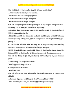 Câu 13: Trong thí nghiệm về quang hợp, người ta thấy rằng khi không có CO
