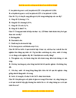 Câu 15: Kết thúc giai đoạn đường phân, từ một phân tử glucose sẽ thu được sản phẩm là