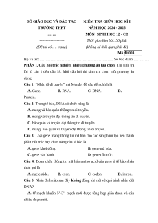 Đề thi giữa kì 1 Sinh học 12 Cánh diều tạo 2024 (Đề 3)