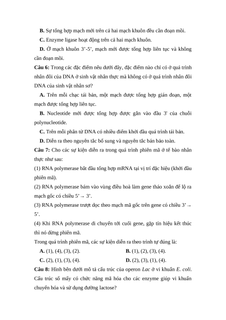 Câu 5: Nhận định nào sau đây không đúng khi nói về quá trình nhân đôi DNA?