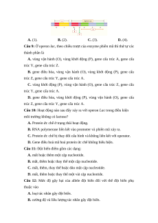 Câu 8: Hình bên dưới mô tả cấu trúc của operon Lac ở vi khuẩn E. coli.