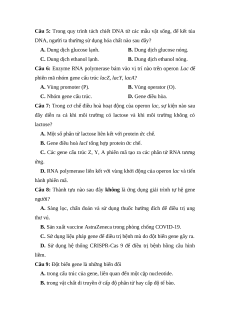 Câu 7: Trong cơ chế điều hoà hoạt động của operon lac, sự kiện nào sau