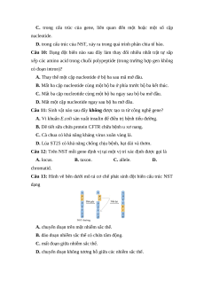 Câu 10: Dạng đột biến nào sau đây làm thay đổi nhiều nhất trật tự sắp