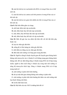 Câu 11: Người ta dùng kĩ thuật chuyển gene để chuyển gene kháng thuốc