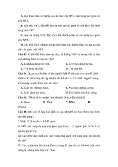 Câu 14: Quan sát tiêu bản tế bào người thấy tế bào này có chứa 47 chiếc
