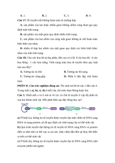 PHẦN I. Câu hỏi trắc nghiệm nhiều phương án lựa chọn. Thí sinh trả