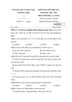 Câu 1: Loại nucleotide A, T, G, C là đơn phân cấu tạo nên phân tử nào sau đây? A. mRNA. B. tRNA. C. rRNA. D. DNA.