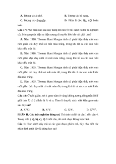 Câu 18: Ở ruồi giấm, xét 1 gene nằm ở vùng không tương đồng trên NST