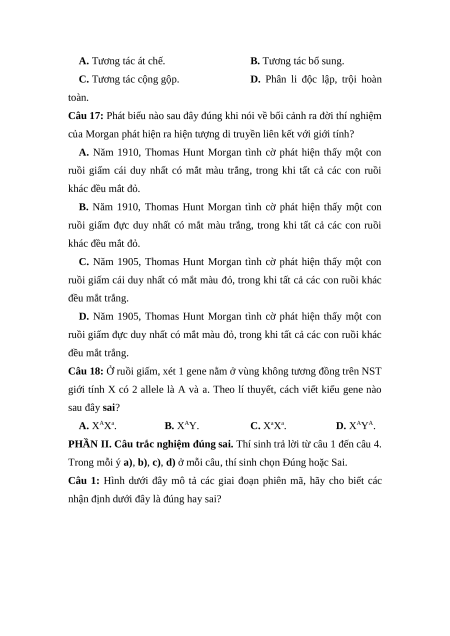 Câu 15: Các allele trong cùng một gene không thể có mối quan hệ nào sau đây?