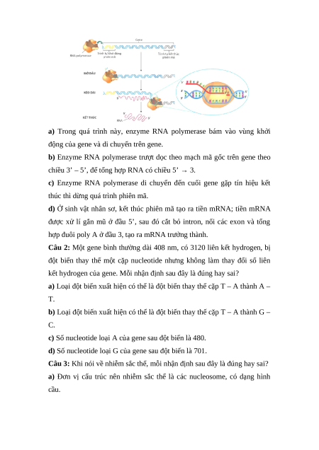 Câu 1: Hình dưới đây mô tả các giai đoạn phiên mã, hãy cho biết các