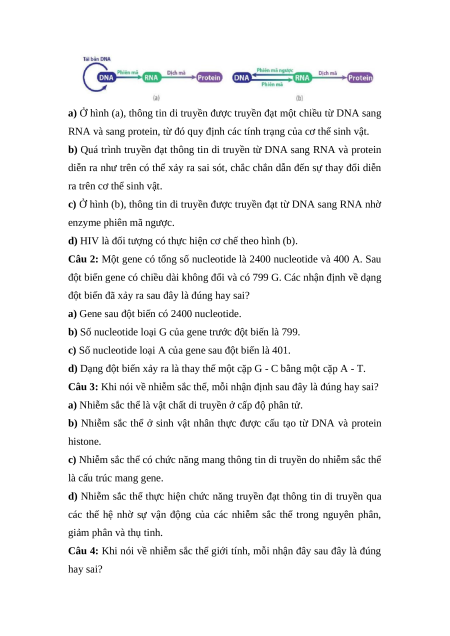 Câu 1: Hình ảnh a và b mô tả về các cơ chế di truyền ở cấp độ phân tử