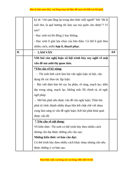 - Thí sinh biết cách làm bài văn nghị luận xã hội, vận
