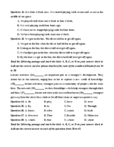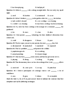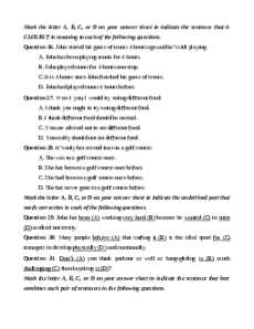 Mark the letter A, B, or D on your answer sheet to indicate the sentence that best