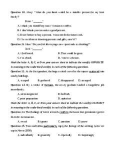 Question 19. I believe participants of exchange courses will _______ a lot of confidence. A. earn B. gain C. obtain D. accomplish