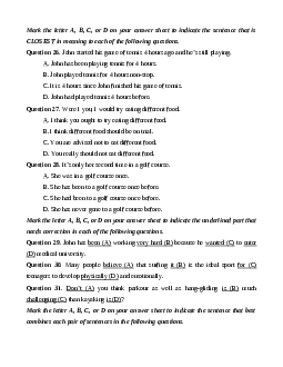 Question 29. John has been (A) working very hard (B) because he wanted (C) to enter