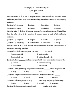 Đề thi giữa kì 1 Friends Global 11 Thời gian: 60 phút Đề 3