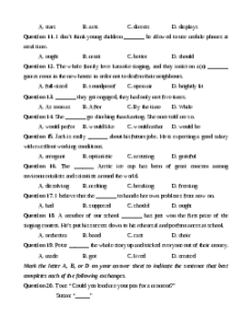 Question 11. I don’t think young children _______ be allowed to use mobile phones at meal time. A. ought B. must C. better D. should