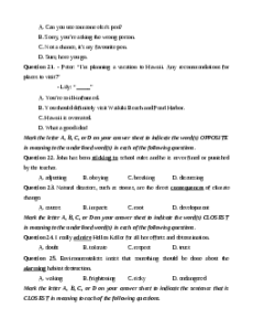 Mark the letter A, B, C, or D on your answer sheet to indicate the word(s) CLOSEST