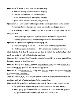 Question 32. My grandfather had been treated unfairly for some time. He quit the job.