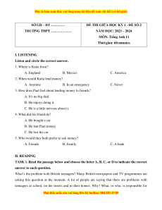NĂM HỌC: 2023 – 2024 MÔN: Tiếng Anh 11