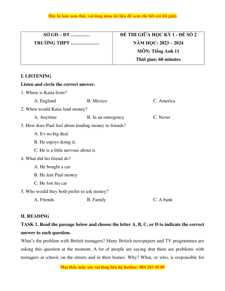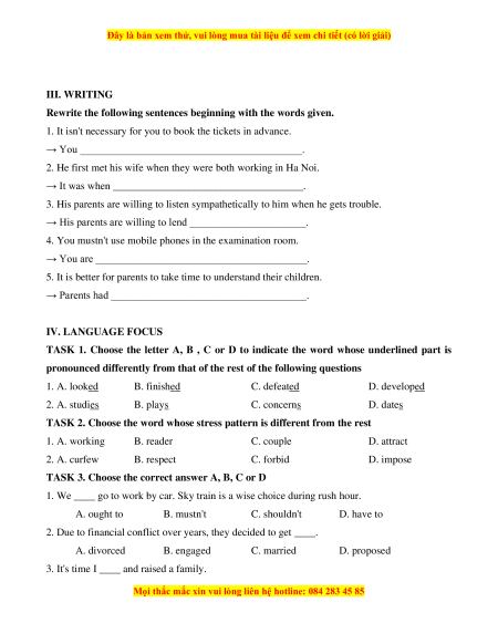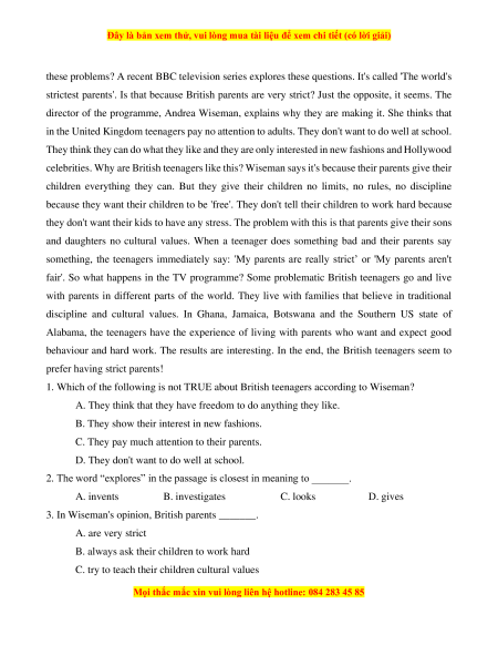 Đây là bản xem thử, vui lòng mua tài liệu để xem chi tiết (có lời giải)