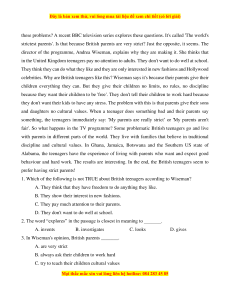 1. Which of the following is not TRUE about British teenagers according to Wiseman?