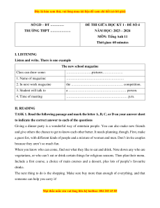 NĂM HỌC: 2023 – 2024 MÔN: Tiếng Anh 11