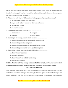 2. The menu should include these EXCEPT .......................... A. main courses B. a supper C. a dessert D. a first course