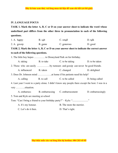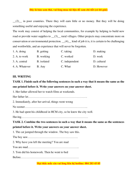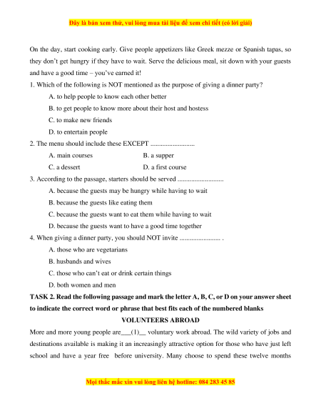 Đây là bản xem thử, vui lòng mua tài liệu để xem chi tiết (có lời giải)
