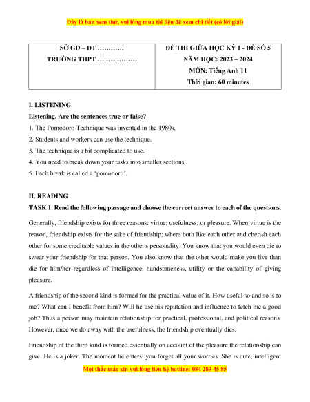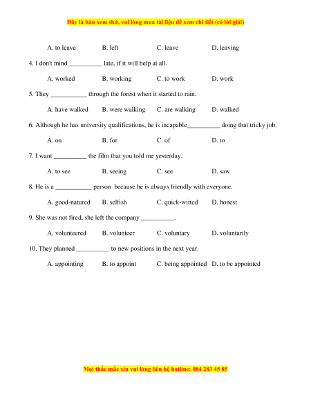 Đây là bản xem thử, vui lòng mua tài liệu để xem chi tiết (có lời giải)