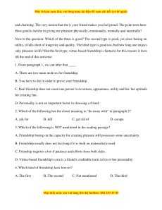 Generally, friendship exists for three reasons: virtue; usefulness; or pleasure. When virtue is the