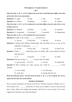 Đề thi giữa kì 1 Tiếng Anh 12 Friends global (Đề 3 có file nghe)