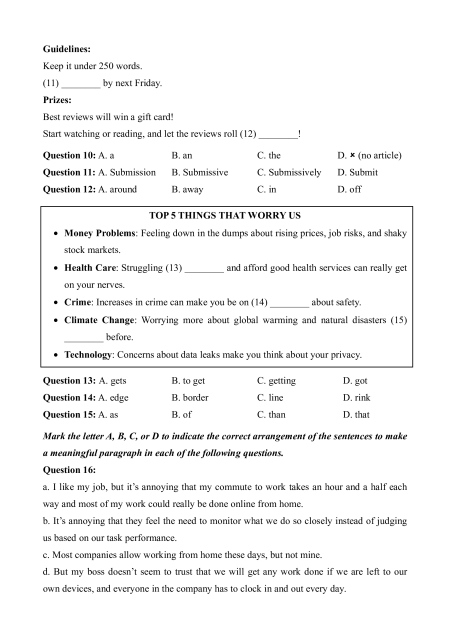 Start watching or reading, and let the reviews roll (12) ________! Question 10: A. a B. an C. the D. (no article)