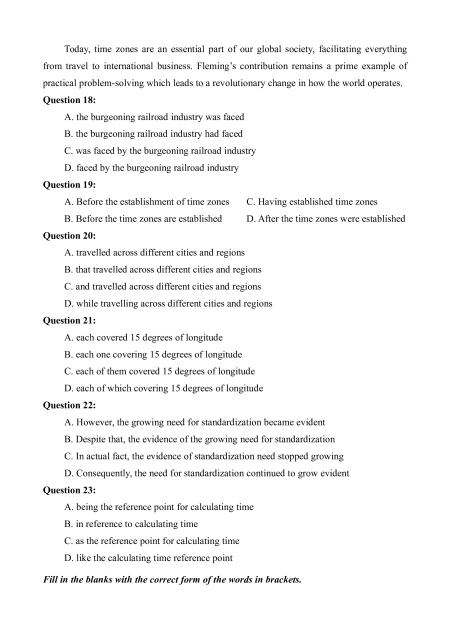 The concept of time zones was invented to solve a pressing issue (18) ________ in the