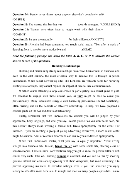 Question 11: A. Submission B. Submissive C. Submissively D. Submit Question 12: A. around B. away C. in D. off