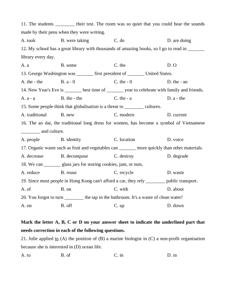 21. Julie applied to (A) the position of (B) a marine biologist in (C) a non-profit organisation