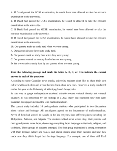 D. If David had passed the GCSE examination, he would have allowed to take the entrance examination to the university.