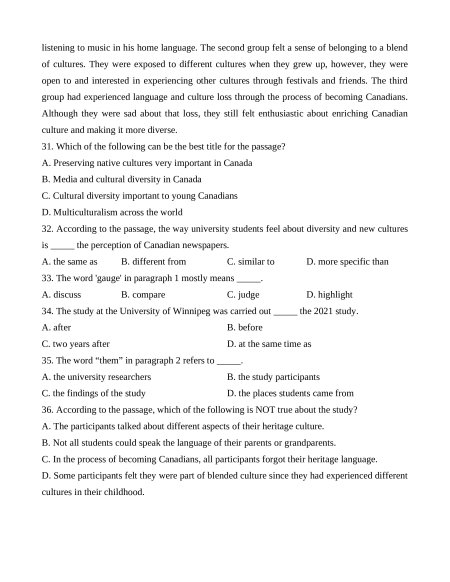 16. The ao dai, the traditional long dress for women, has become a symbol of Vietnamese ________ and culture. A. people B. identity C. location D. voice