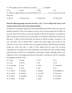 Earth Hour is a movement organised by the World Wildlife Fund (WWF). The event takes (13)