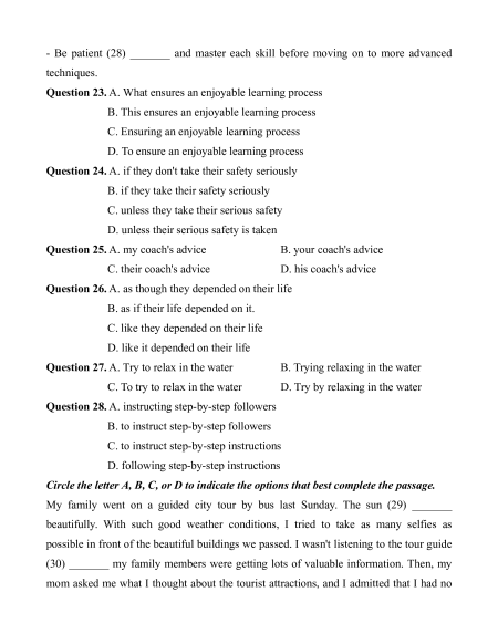 - Be patient (28) _______ and master each skill before moving on to more advanced techniques.