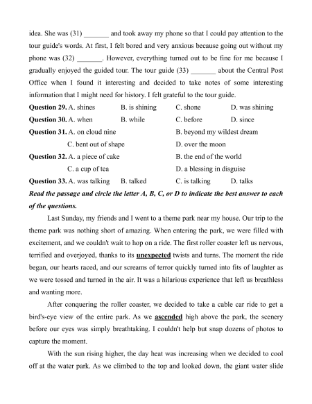 Circle the letter A, B, C, or D to indicate the options that best complete the passage.