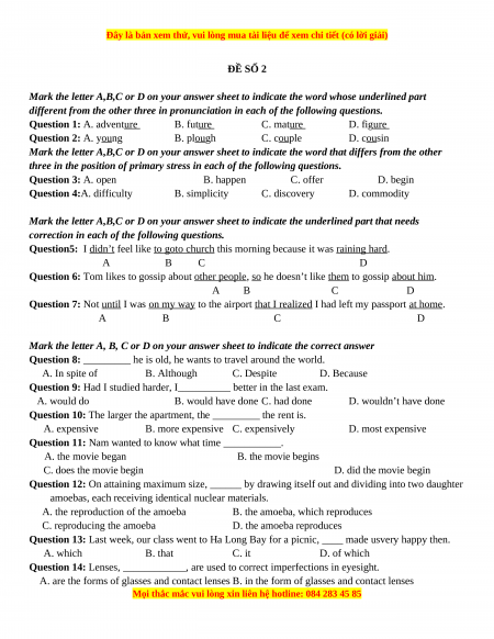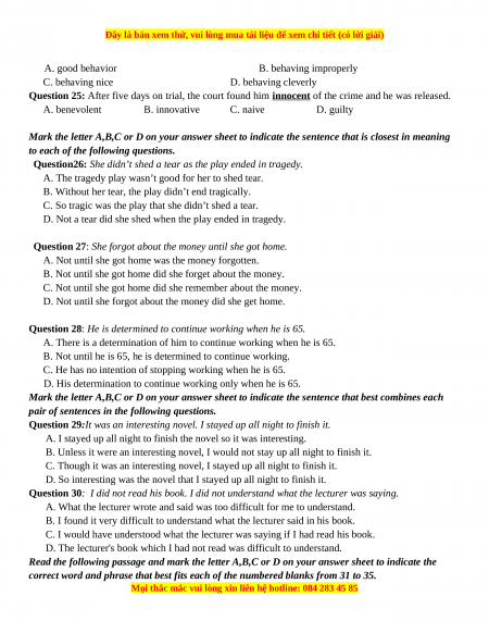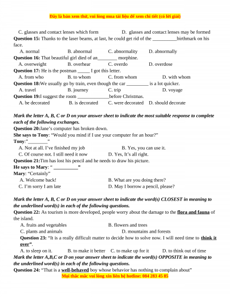 Đây là bản xem thử, vui lòng mua tài liệu để xem chi tiết (có lời giải)