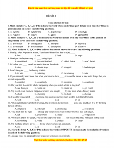 the primary stress in each of the following questions. 3. A. profession B. consequence C. interpret D. objective 4. A. assessment B. measurement C. description D. effective
