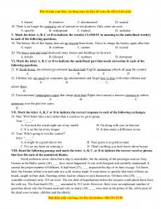 VIII. Read the following passage and mark the letter A, B, C, or D to indicate the correct word or phrase