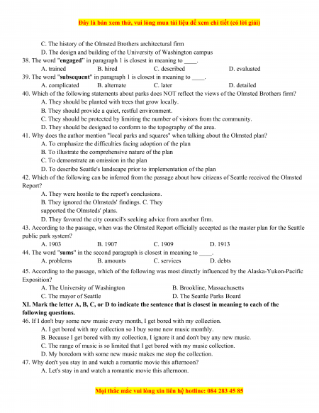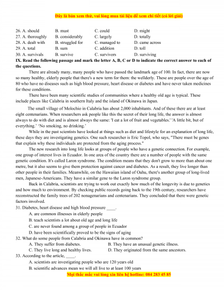 IX. Read the following passage and mark the letter A, B, C or D to indicate the correct answer to each of the questions.