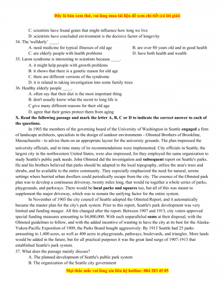 IX. Read the following passage and mark the letter A, B, C or D to indicate the correct answer to each of