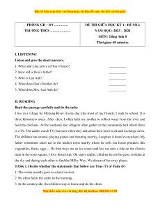 NĂM HỌC: 2023 – 2024 MÔN: Tiếng Anh 8